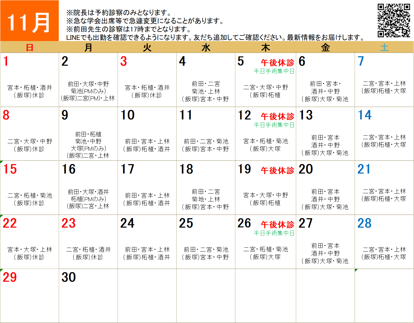 11月獣医師出勤表