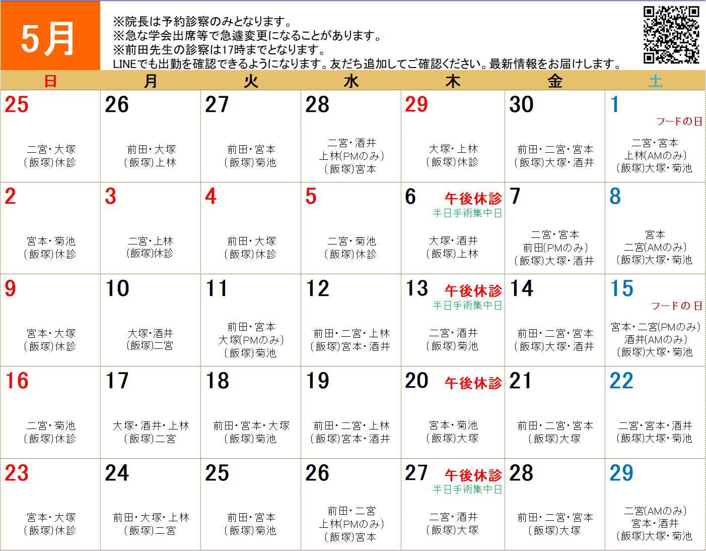 5月獣医師出勤表