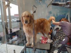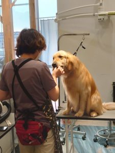 大型犬さんは画像に少し写っている、トリマーさんの秘密兵器が登場するみたいですね(;・∀・)